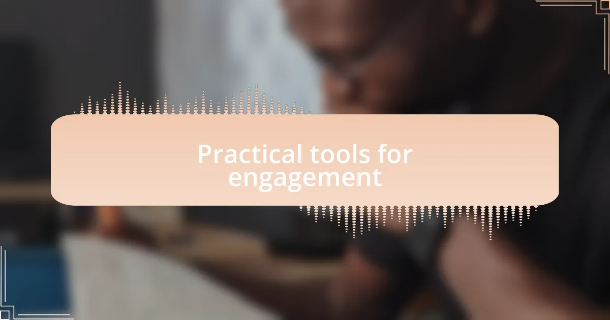 When it comes to practical tools for engagement, I’ve found that visual aids can work wonders in the classroom. For example, during a clinical case discussion, I once created a large infographic that illustrated patient pathways. As we navigated through it together, students became visibly more engaged, asking questions and analyzing data more critically. Doesn’t it feel satisfying when complex information becomes accessible just with the right visuals?